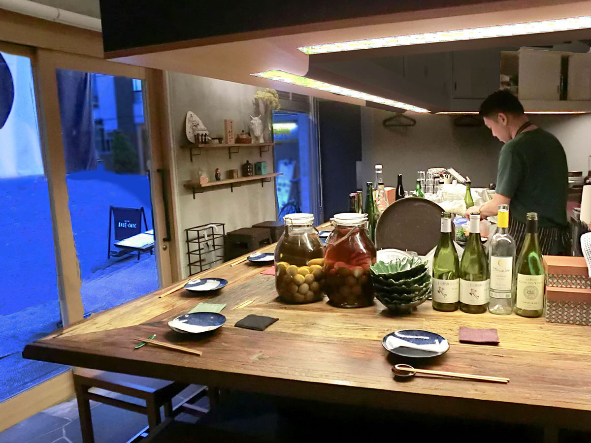 「夜台所BASE-CHIC(ベーシック)」は、自然派ワインと和食ベースの創作料理が楽しめるお店。恵比寿駅から広尾方面に10分ほど歩いた路地裏にあります。