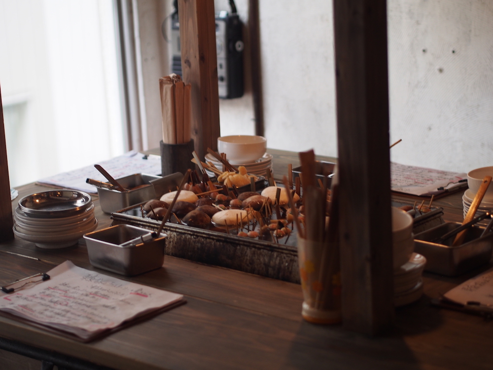 雰囲気だけでも十分に楽しめますが、このお店ではさらなる仕掛けが満載!まず、目の前にあるおでん鍋から自分で好きなおでんを自由に取ってOK。ドリンクや一品料理のみ注文するスタイルです。