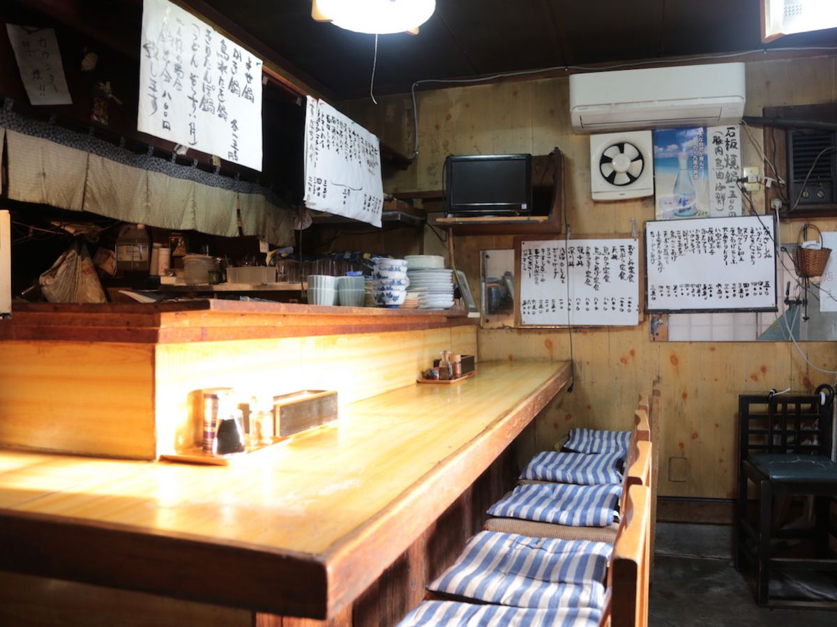 まるでタイムスリップしたかのような懐かしい雰囲気が漂う店内には、メインとなる7席ほどのカウンターと、奥には小上がりの座敷があります。