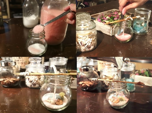 アロマとキャンドルが学べるスクールで、体験レッスン(要予約)に挑戦してみましょう。体験できるのは、ジュエルキャンドルやボタニカルキャンドル、ハーバリウムなどいろいろ。少人数制なので、初心者でも安心して挑戦できます。カラフルでキラキラと輝くキャンドルは、部屋のインテリアにもちょっとしたアクセントになっておすすめです。キャンドルが冷めるまでの間は、お茶とスイーツ、おしゃべりを楽しんで。カフェタイムが終わるころ、キャンドルも完成です。