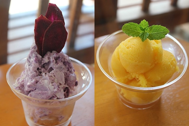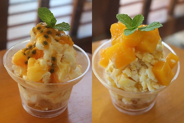 マイナス20℃に冷やした大理石の上で、アイスクリームとトッピングをミックスして作る大理石アイスと、無添加ジェラートを扱うアイスショップ。マンゴーやパッションフルーツなどのフルーツや、ちんすこう、泡盛など30種類ものトッピングが用意されていて、いろいろな味が楽しめます。農家で直接買い付けるフルーツは安心安全なものをチョイス。南国ならではのフルーツの風味を堪能できます。