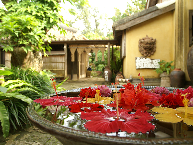 自家製の手打ち八重山そばや、ミミガー、ラフテー、地豆豆腐といった沖縄料理の会席などを提供する郷土料理店。広々とした敷地の中には古民家が8棟あり、庭には南国らしい花や緑あふれています。その庭から浜辺へ降りることもできます。沖縄らしい風情とともに味わう料理は格別です。
