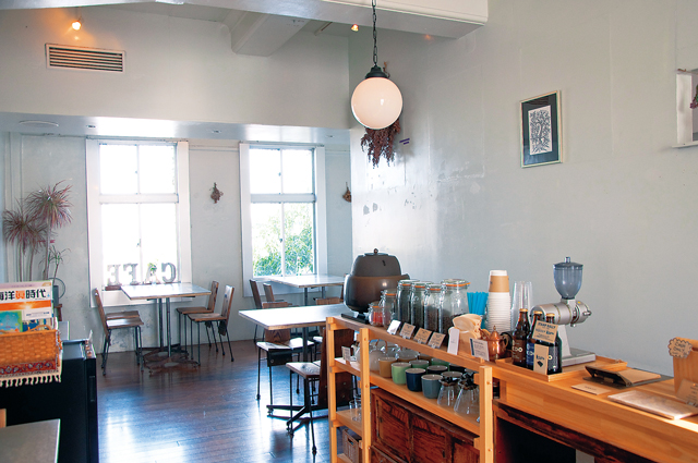 海沿いのレトロなビルにあるのが、カフェにセレクトショップが併設された「cafe&shop kaguya」。抹茶を使ったスイーツやドリンクが人気です。ここでチェックしたいのが、セレクトされた雑貨たち。沖縄のやちむん焼きの器や、大人のための古着、作家さんのアクセサリーなど、こだわりのラインナップが並びます。