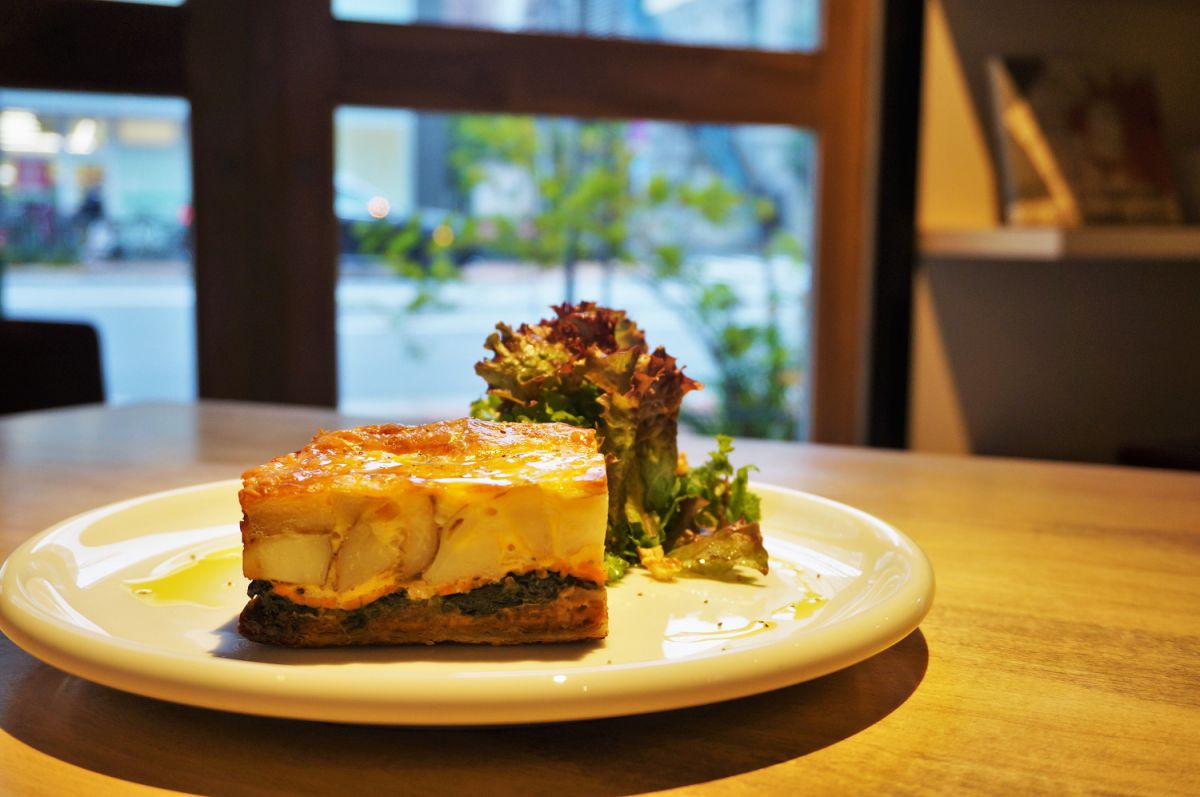 キッシュで印象的なのがその高さ!ぎっしりと具が詰まっています。スパニッシュ風オムレツを参考にしたそうで、じゃがいもがゴロゴロと入っていますよ。