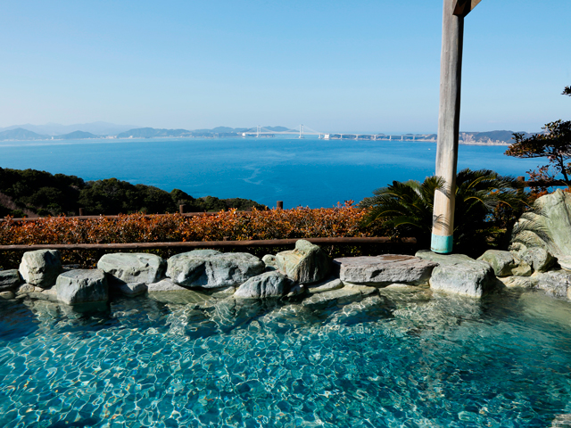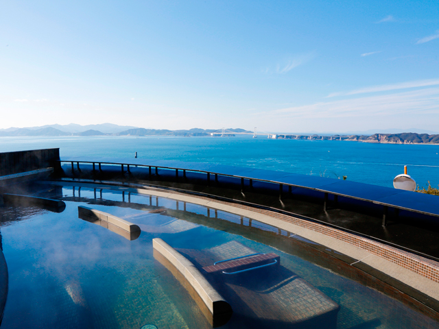 岬の高台に建つホテル内にあり、2018年4月に開湯したばかりの温泉です。鳴門海峡と大鳴門橋を一望できる、迫力たっぷりの露天風呂で知られています。南あわじ温泉は100%自家天然源泉なので、保湿保温効果もバッチリ。潮風をあびながら、抜けるような青空と鳴門海峡を眺めて、開放的な気分を堪能しましょう。
