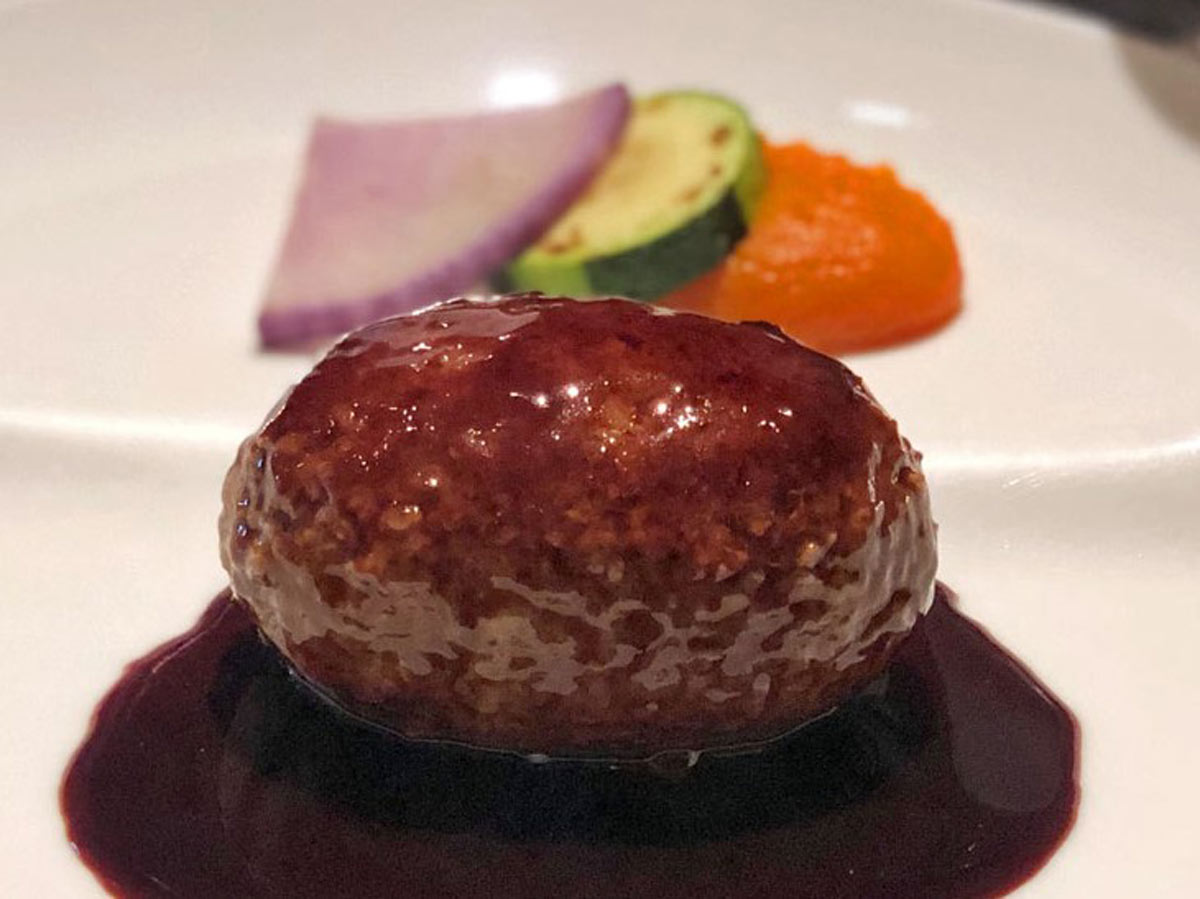 ハンバーグには、肉110gに対して10gのフォアグラが包み込まれているそう。