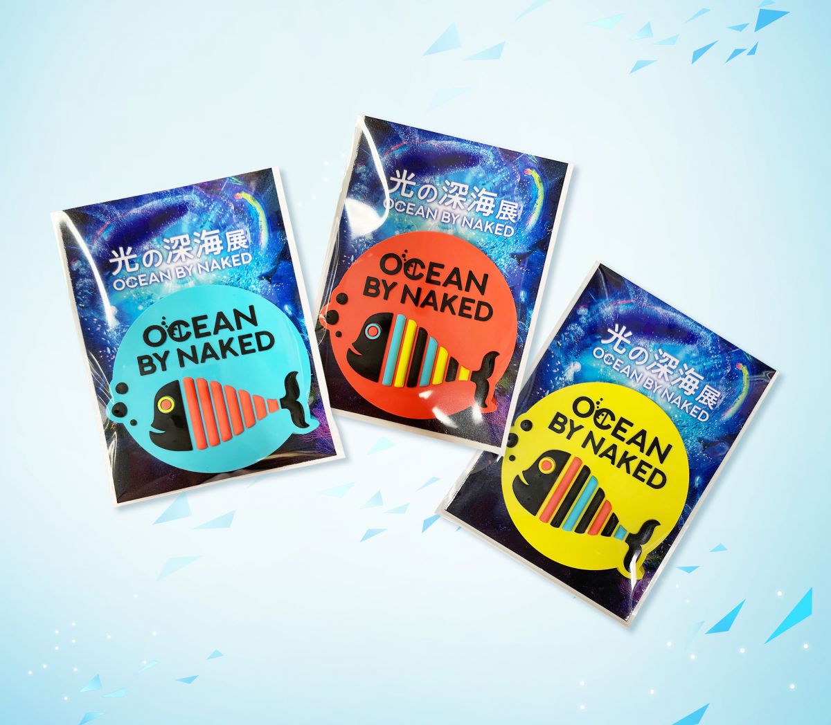 『OCEAN BY NAKED』のオリジナルキャラクター“神魚”が描かれた「オリジナルマグネット3種」各650円。