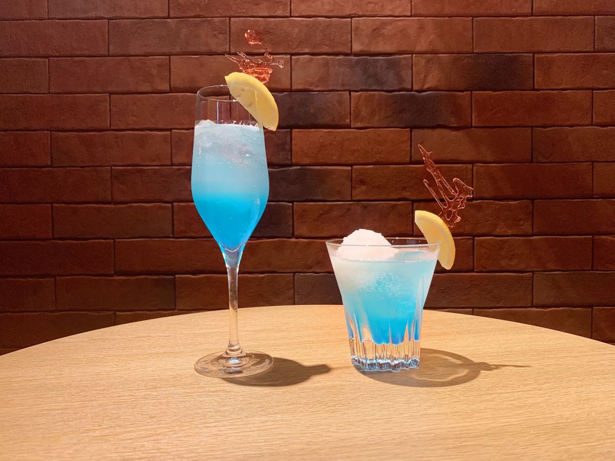 B1階の『PITCH CLUB』では、海をテーマにさわやかなオーシャンブルーを表現したピーチリキュールがベースの「OCEAN BY NAKEDオリジナル深海カクテル」1000円も。+200円で瀬戸内レモンのシャーベットをトッピングできますよ。