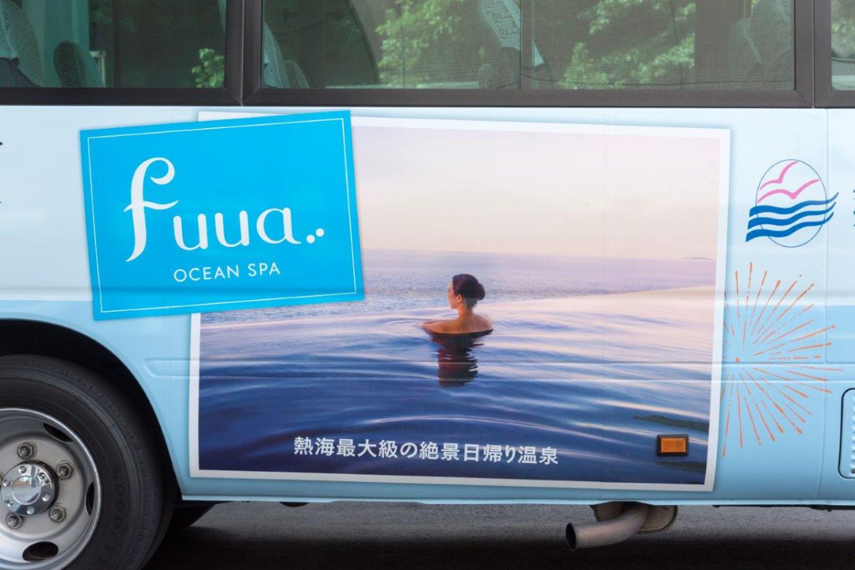 こちらは、2019年3月にオープンしたばかりの日帰り温泉施設「オーシャンスパ Fuua(フーア)」の送迎バス。これでも一応、おでかけサイトの編集部員なので、常日頃より偏見を持ってはいけないと自分に言い聞かせています。そう強く肝に命じてきましたが、いや、だって、お風呂と海が繋がってるじゃないですか。そんなんできひんやん普通…。