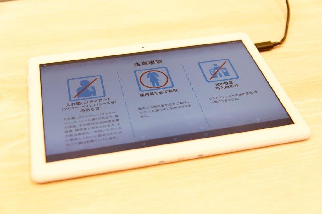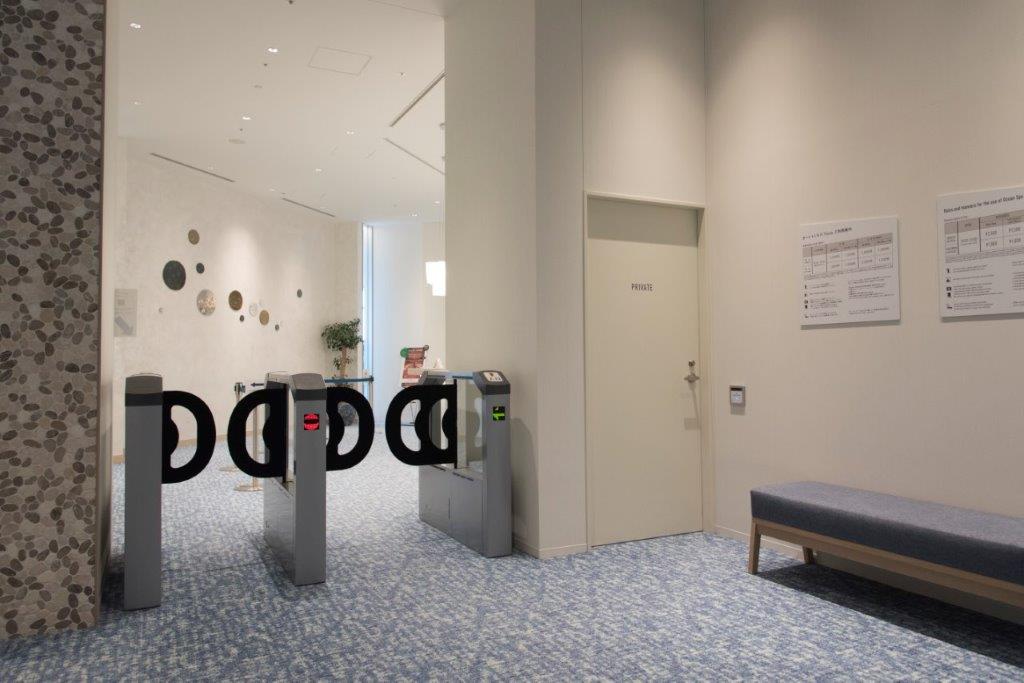 もうホントにご安心ください、「オーシャンスパ Fuua」は入館後に手渡されるリストバンドを使った、後払い精算制です。入館の際はとにかく入るだけ!ということを知らず、ゲート前でオロオロしているところを見つけてくれたスタッフさん。「どうぞお入りください~」と笑顔でご案内いただきました、神。