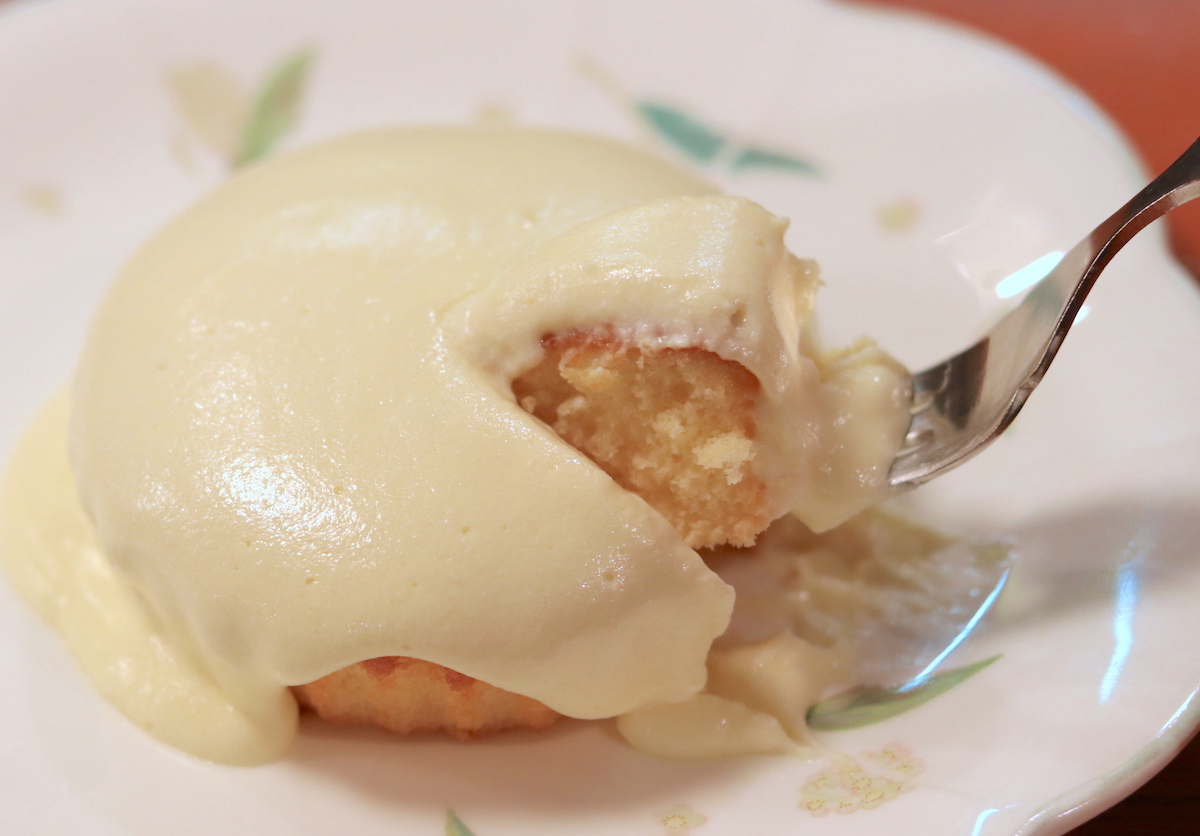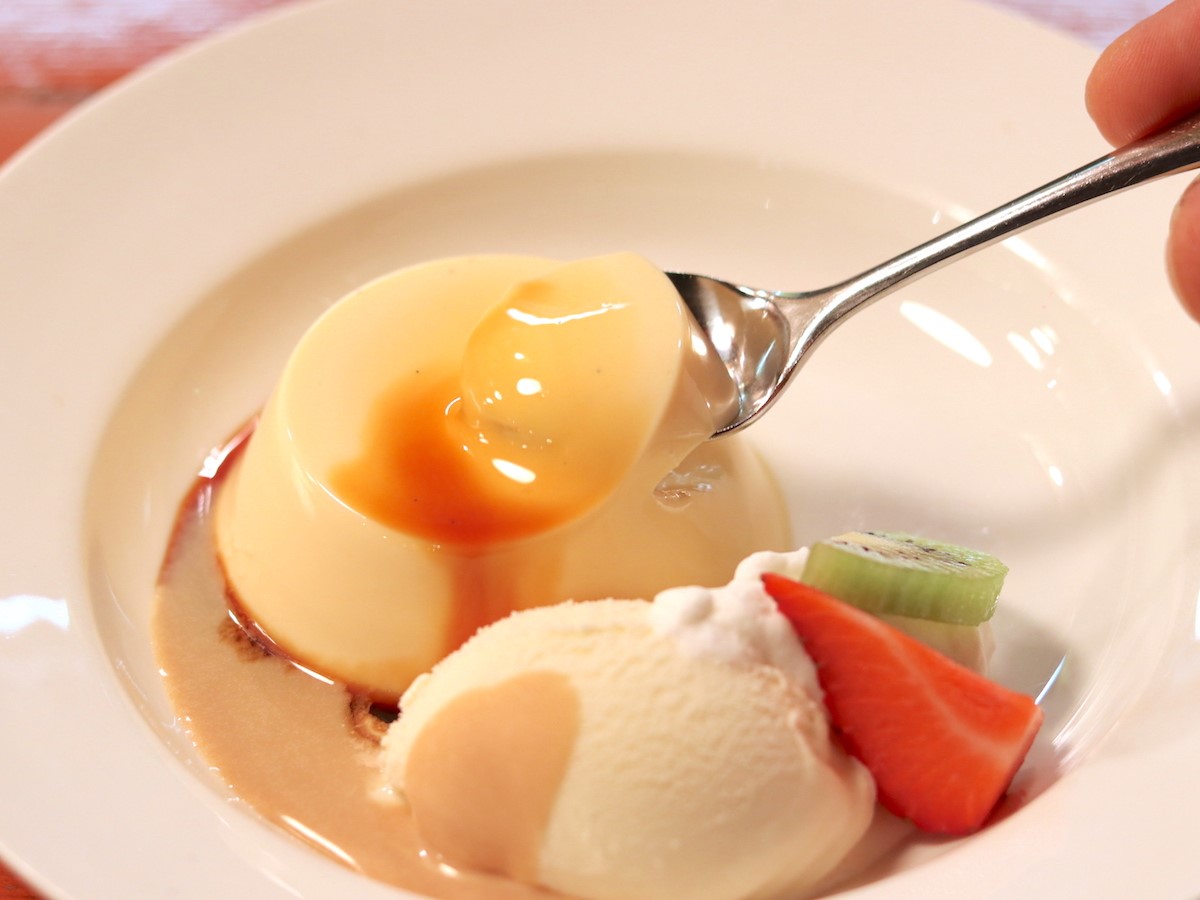 スプーンですくったときにはプルンッとほどよい弾力ですが、口の中ではやわく、あごを動かすとほわほわとろけていきます。おいしい…! 加熱は最小限に留め、ほとんど“生”の状態だからこそ、卵・ミルク・生クリームの風味がそれぞれしっかり生かされます。"
