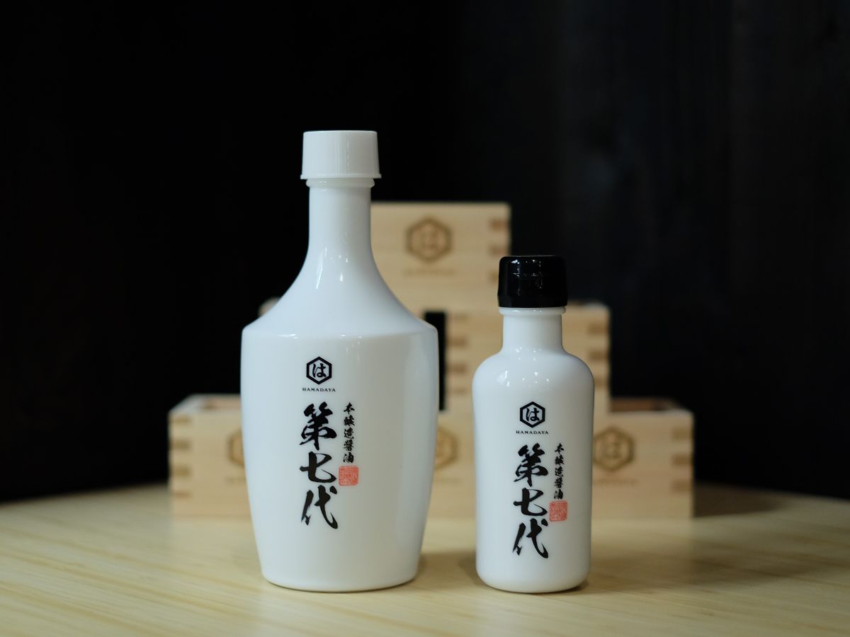 こちらは蔵の木桶の中で長期間熟成させた、プレミアム醤油「第七代」(150ml入り 1383円・税込)。木桶で540日もの長期間熟成させた特別な醤油です。
