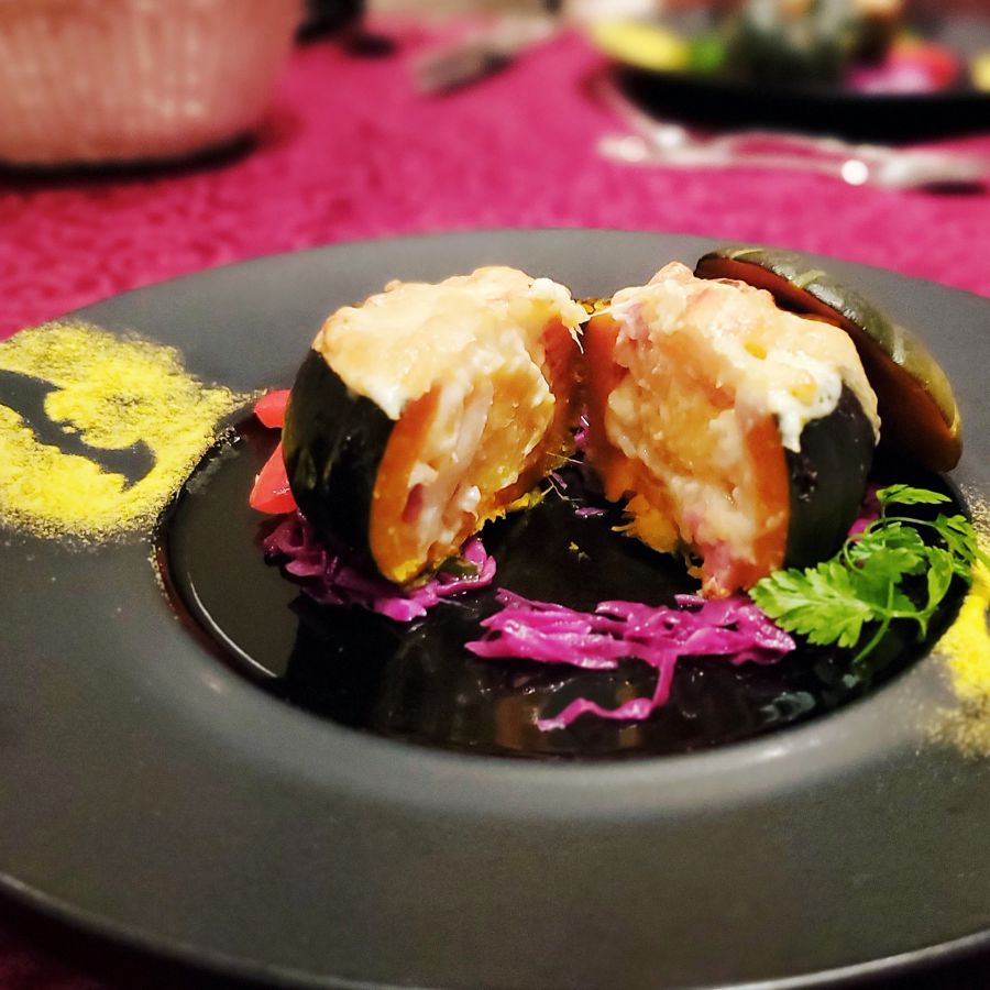 オードブルに始まり、皮まで美味しい坊ちゃんかぼちゃを使用した「南瓜のニョッキグラタン」、メインディッシュの「ローズマリーとアイユでマリネした岩中ポークのグリル香草の香るクリームソース」。