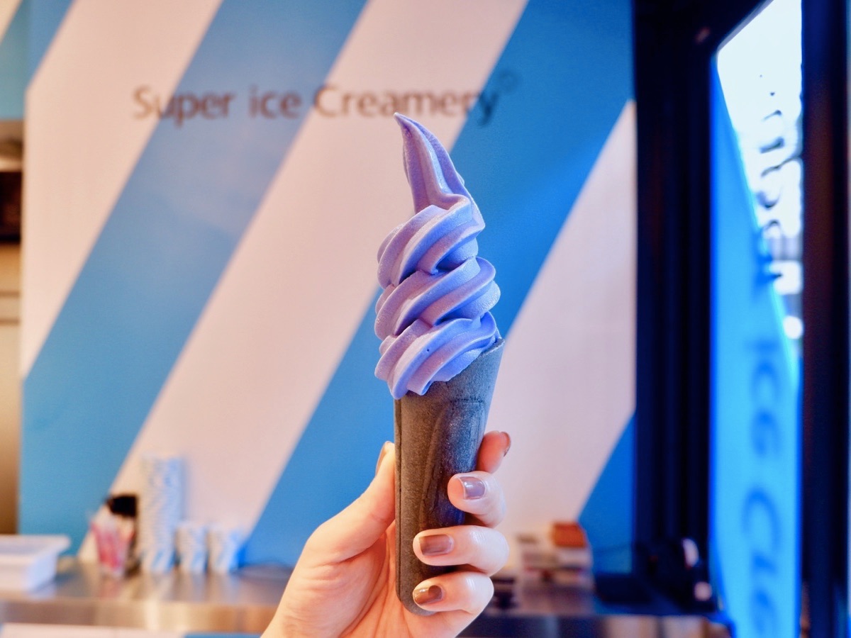 真っ青に染まったヘルシーヴィーガンソフト「Super ice Creamery」