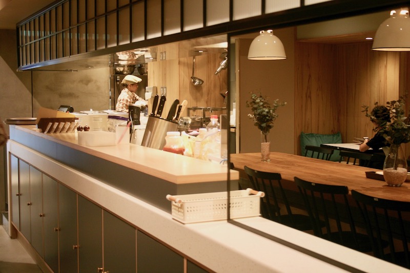 店内は、オープンになったキッチンを客席から見渡すことができ、待っている間も調理の過程を見て楽しめる「工房一体型」。
