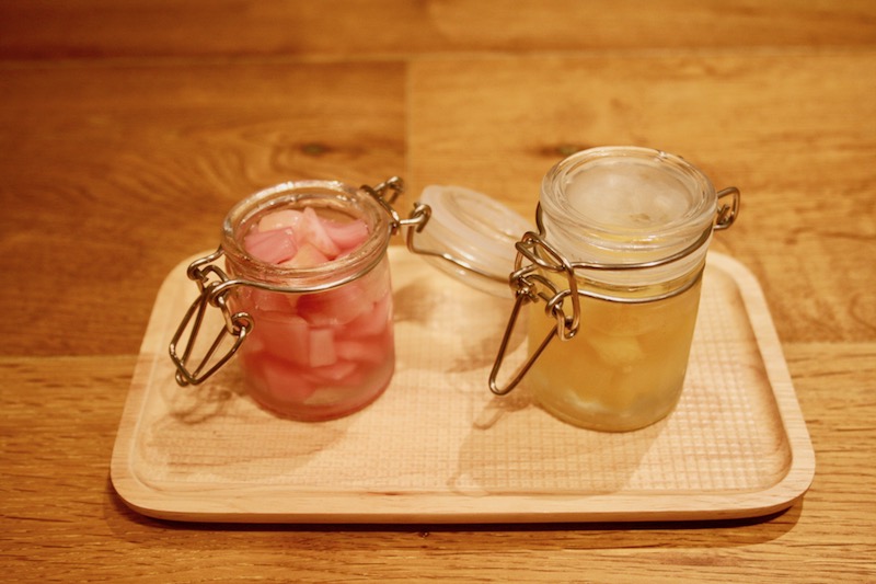 ピクルスは、これまた珍しいパイナップルとレッドオニオンの2種。