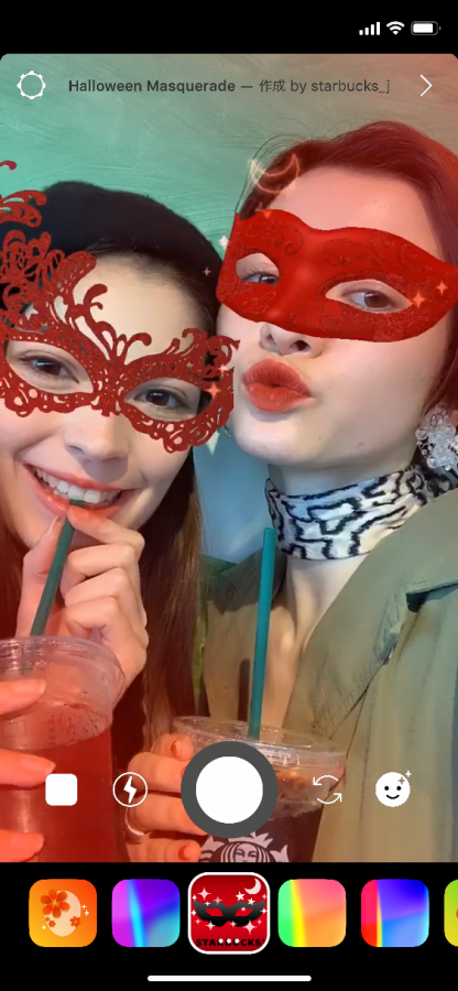 ARカメラエフェクト「Halloween Masquerade」は、スターバックスオリジナルで開発した、Instagram ストーリーズ用のカメラのARフィルターで、テーマは「Masquerade」。楽しいエフェクトが満載なのでぜひ体験してみて。