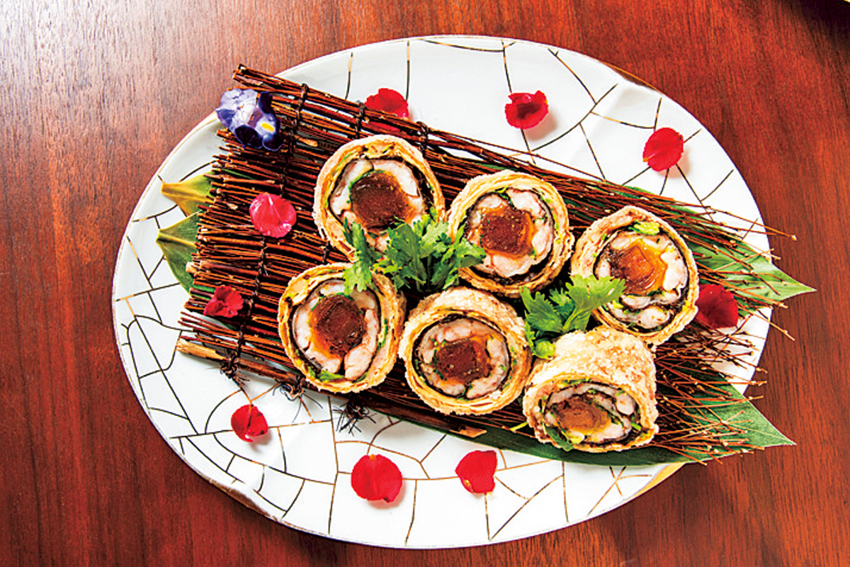 扁魚春捲NT$880は酒家菜の名店・蓬莱閣のシェフ直伝の春巻です。