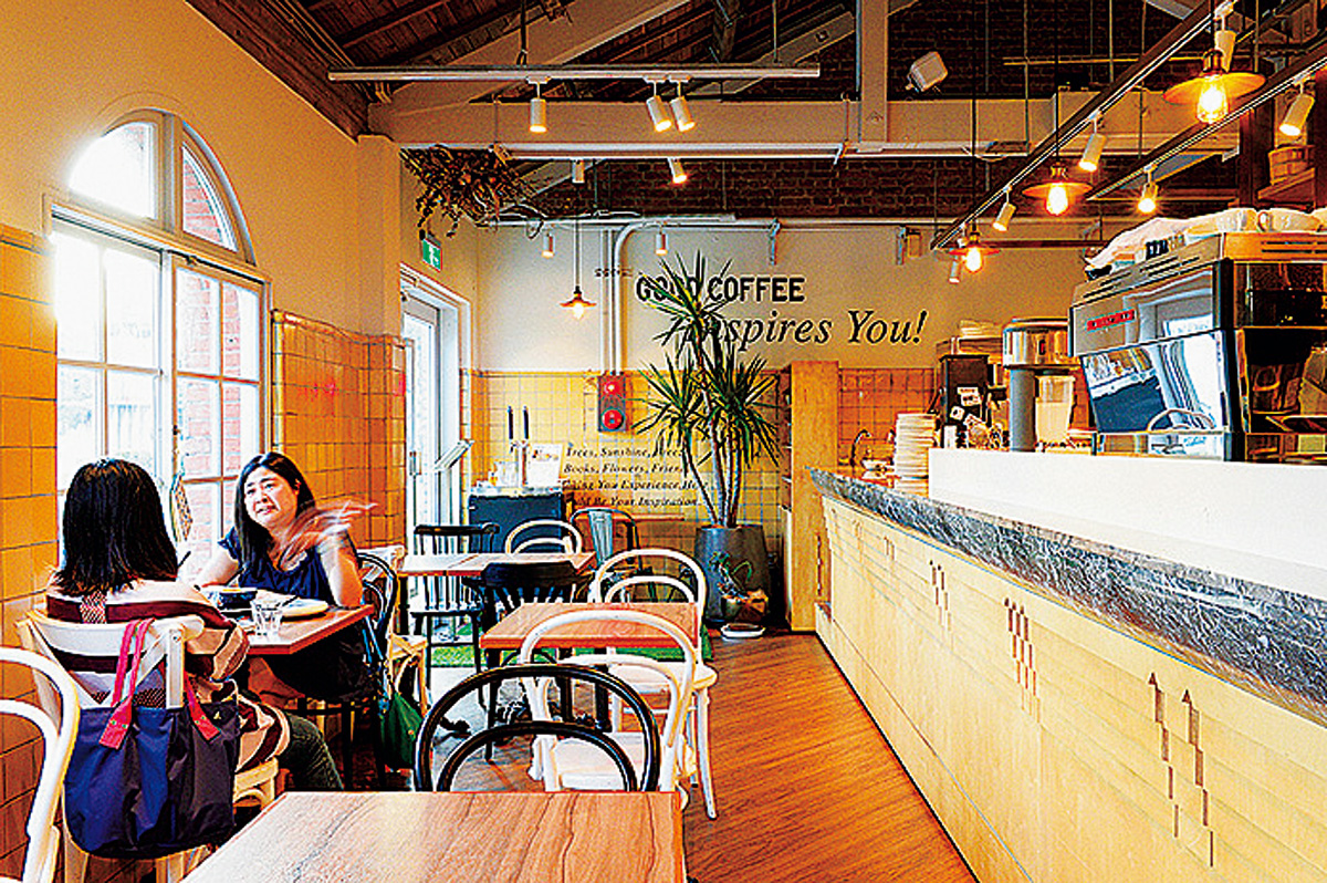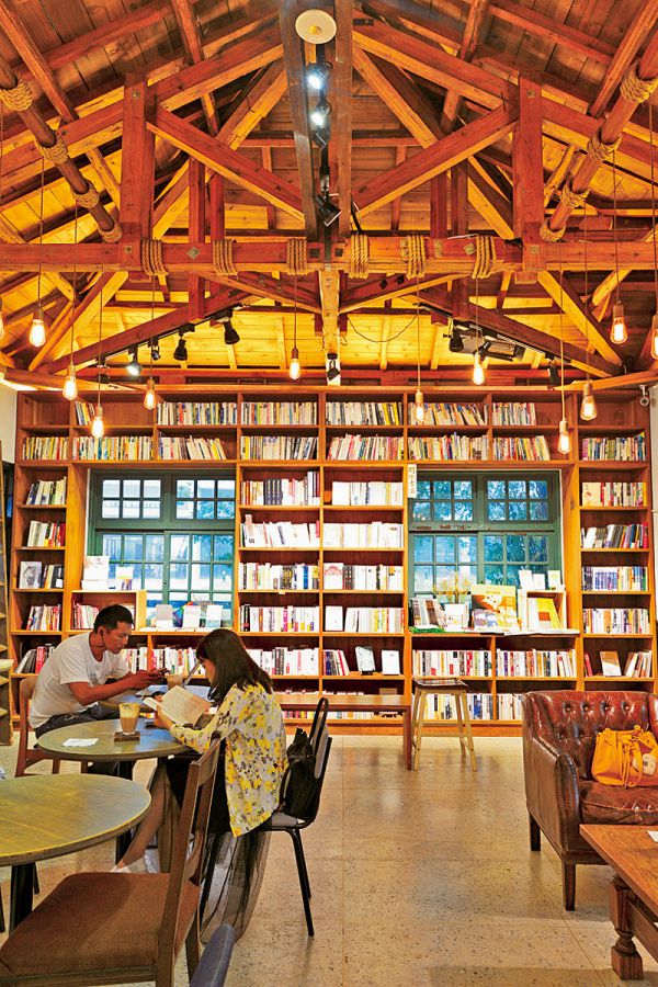 たばこ工場で働く人のために造られた託児所をブックカフェ閲楽書店(ユ エ ル ーシュウティエン)に。アートやカルチャーの書籍に囲まれ、居心地抜群です。緑が生い茂る入口に、ノスタルジックな雰囲気が漂います。