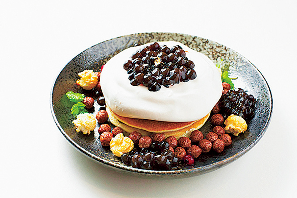 4Fにある「冰果甜心(ビングォティエンシン)」はスイーツ店が集まる「ATT4FUN」内の甜蜜王國にあるカフェ。タピオカがのるパンケーキ(NT$280)はタピオカと話題性がたっぷり。そのほか、フードメニューも充実しています。