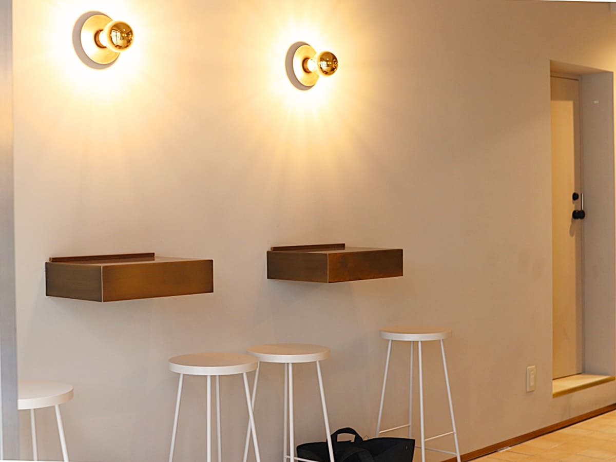 店内は白でまとまっていて、アートのように輝く照明やテーブルなど、細部にまでこだわりの詰まった空間になっています。