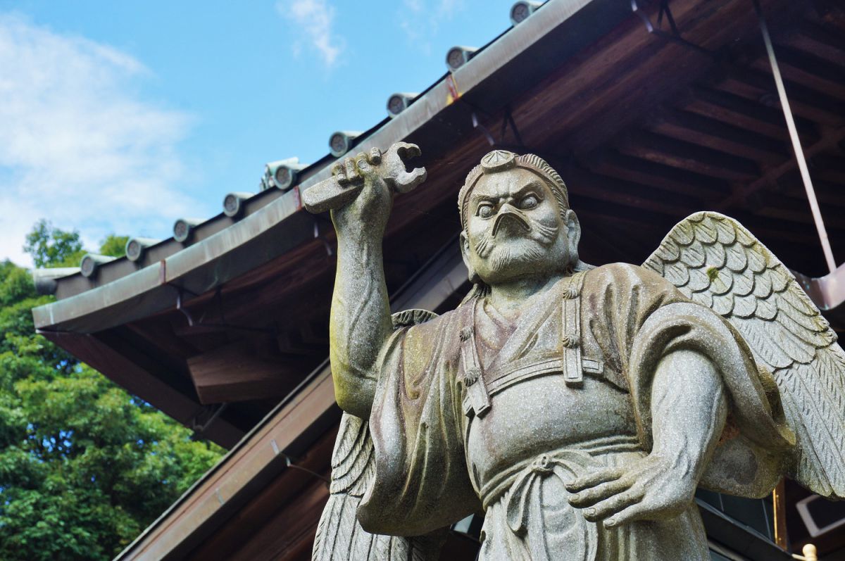 薬王院の山門をくぐると、大きな天狗が迎えてくれます。