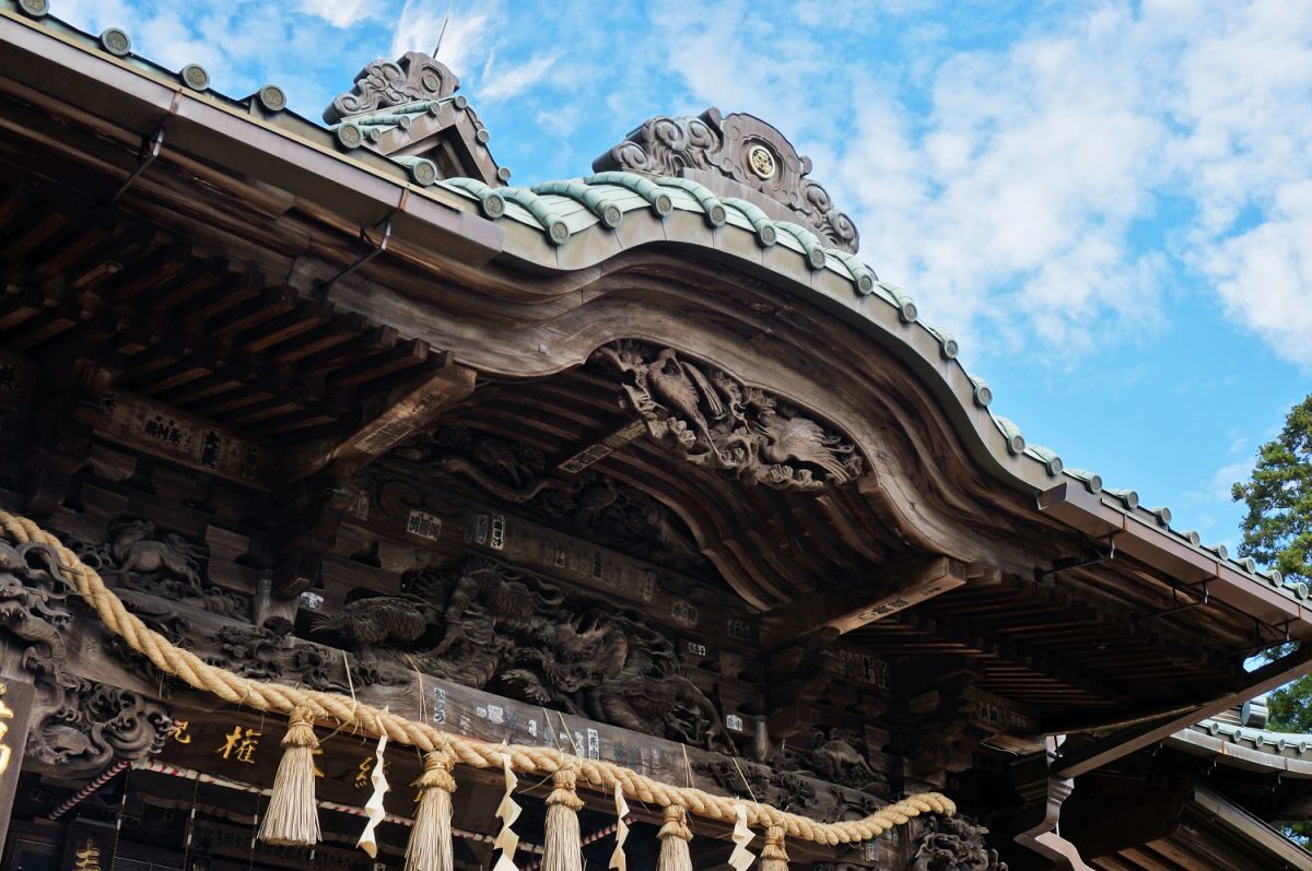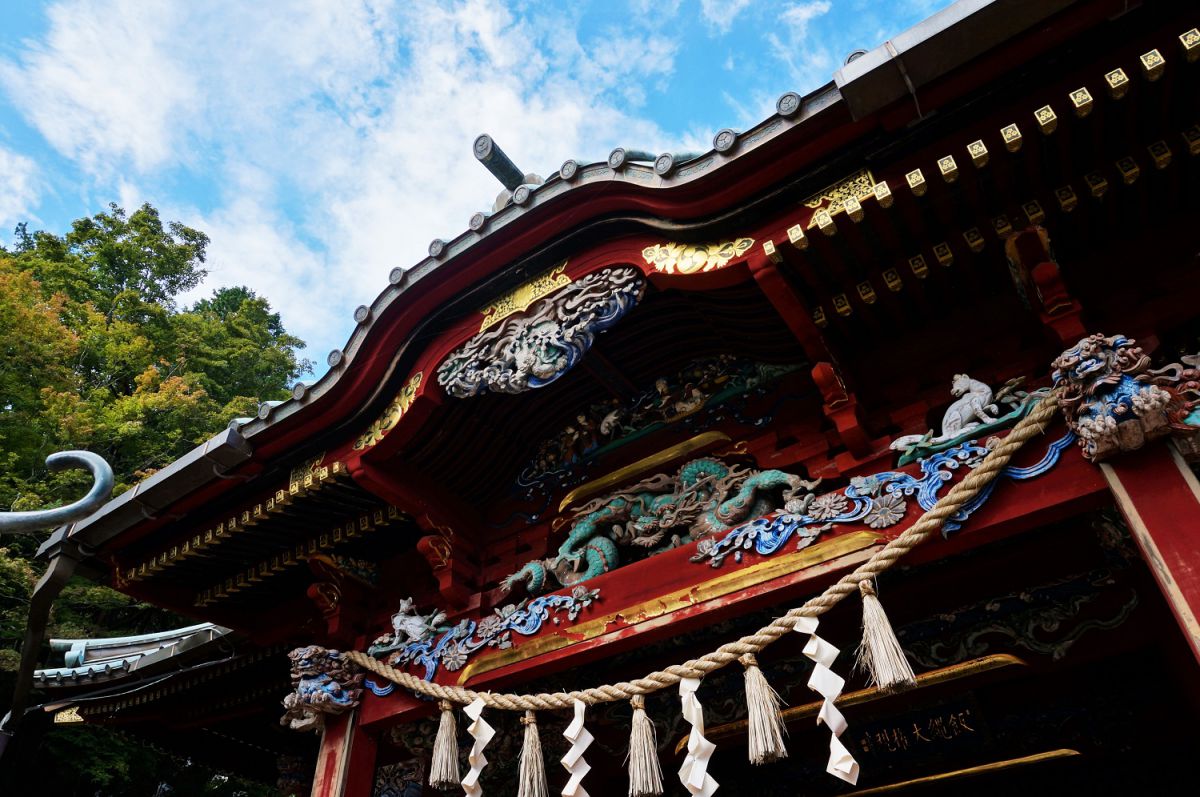 一方、カラフルな色付けの御本社は朱色が青空に映えます。凝った彫刻やさまざまな色合いの装飾は必見です!