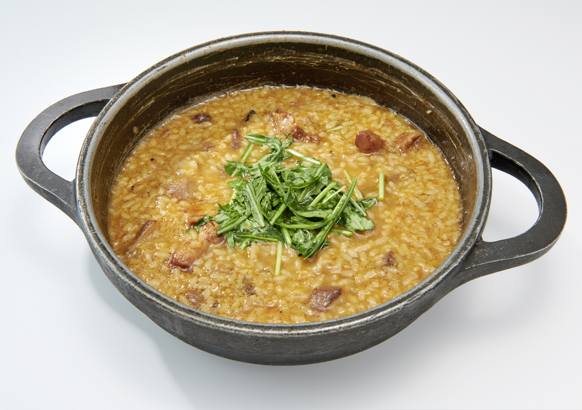 2階「ビキニ ピカール」は、本格モダンスペイン料理が気軽に味わえるお店。「スペイン産キノコのメロッソ」3200円は、きのこの旨みとだしがベストマッチしたスペイン風リゾットです。(提供時間:17〜23時)