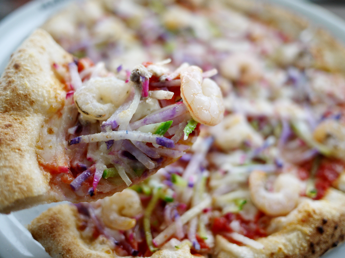 ピッツァに使われているのは、ビタミン大根、紫大根、レディース大根の3種類の大根。野菜はその日によって変わるので、毎回いろんなおいしさに出会えます。