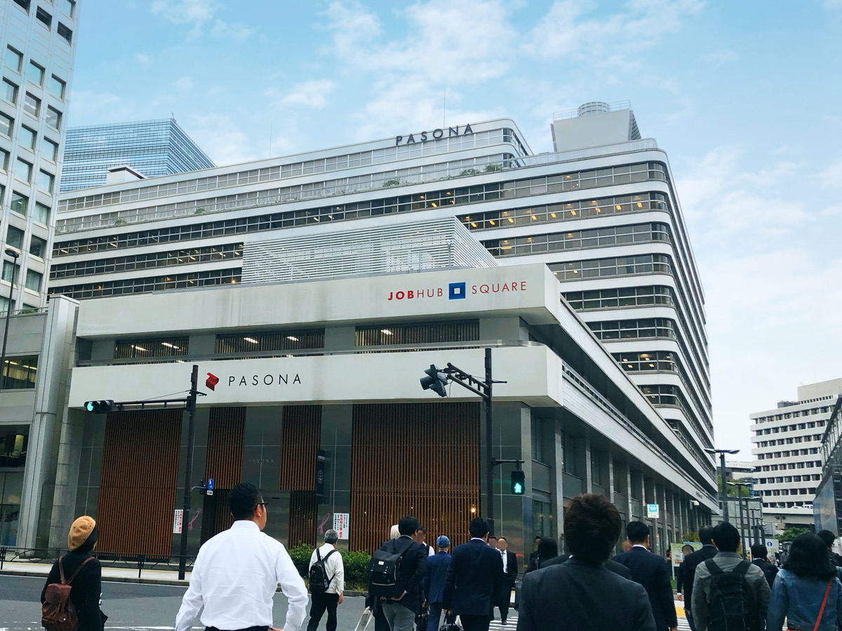 JR東京駅日本橋口の目の前にある「JOB HUB SQUARE」13階に、入場無料の「パソナ大手町牧場」はあります。