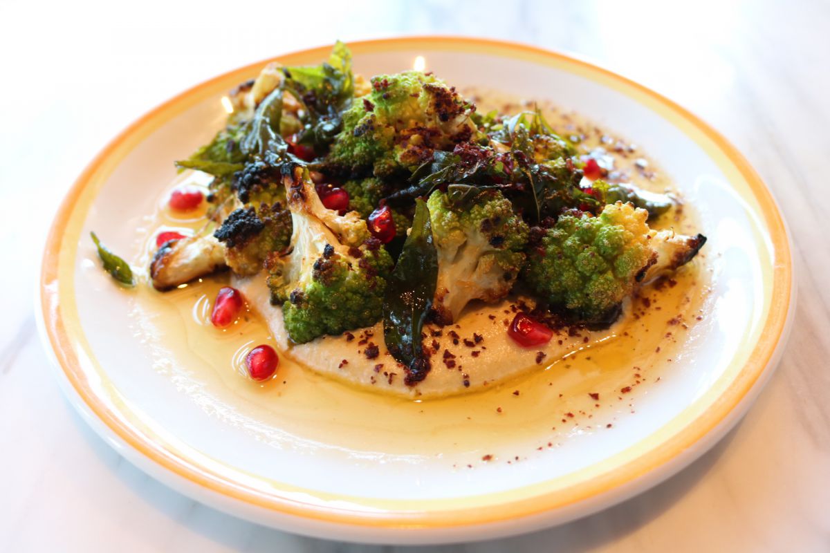 まずは前菜におすすめしたいのが「ロマネスコのロースト - スパニッシュアーモンドソース"アホブランコ"、カレーリーフオイル」1520円。