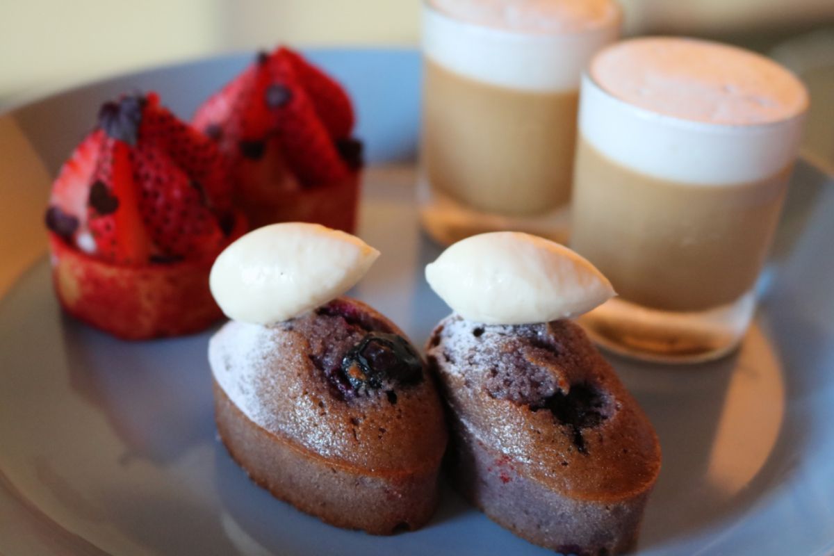 上段には、「苺のタルト、マスカルポーネ&ラズベリークリーム」、「エスプレッソパンナコッタ」。手前の「ブルーベリーフィナンシェ」の上にはちょこんとクリームチーズフロスティングがのっていてかわいい!