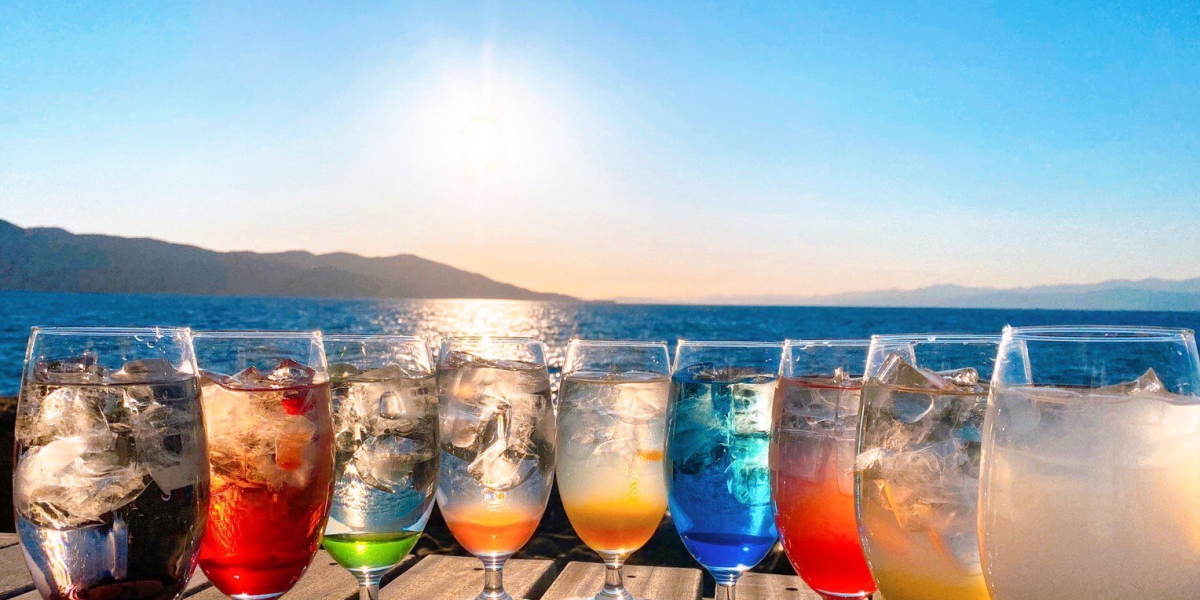 天気のいい日におすすめなのが「カラフルソーダ」640円や、フルーツをふんだんに使った「MIXソーダ」720円などのソフトドリンク。日に透かすとキラキラして、目の前にある水面のきらめきを閉じ込めたようです。