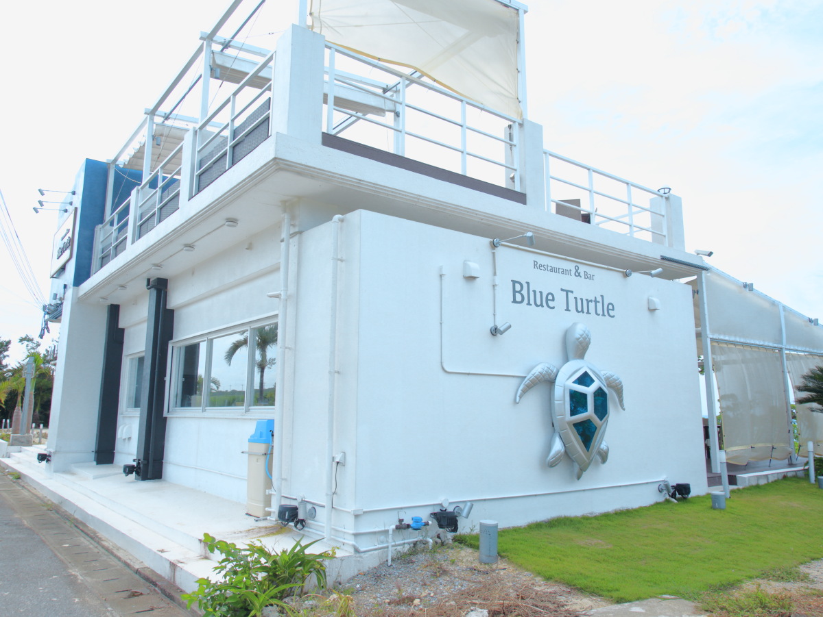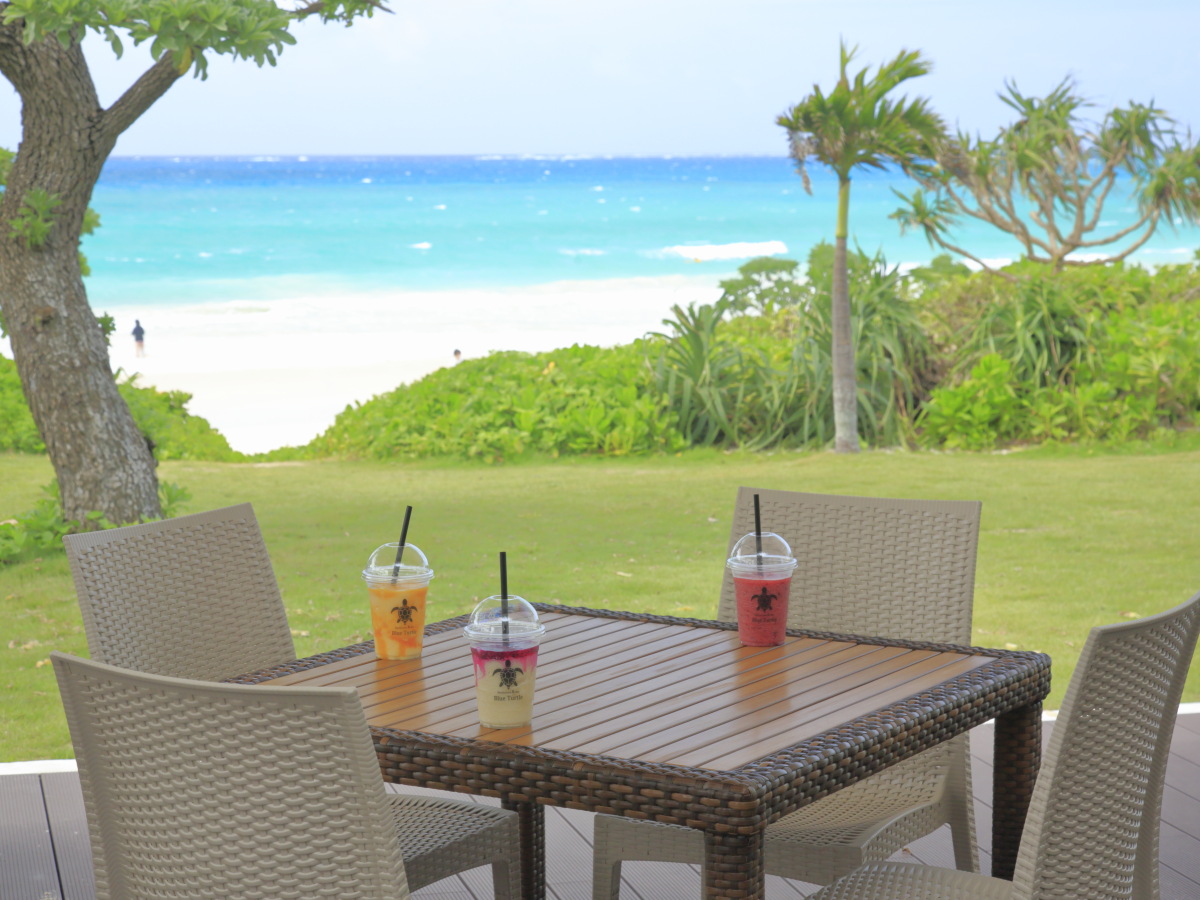 なかでも美景ビーチとして名高い「渡口の浜」の目の前にあるのが白亜の海カフェ「Blue Turtle(ぶるー たーとる)」。