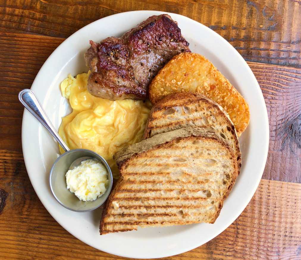 なんと朝からオーダーできるびっくりメニューが「ステーキ&エッグ」(2400円)! 朝からステーキとは馴染みが薄いですが、アメリカでは伝統的な朝食のスタイルなのだとか。