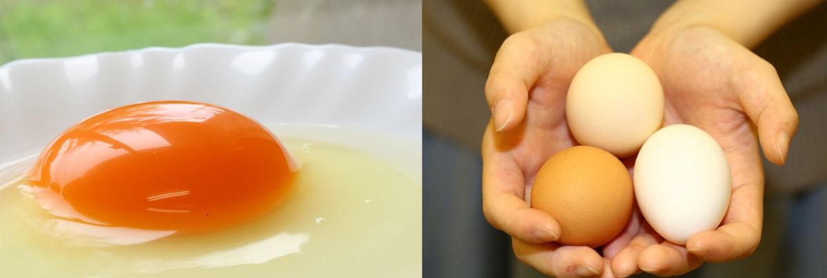 「たまごの樹」で使われるたまごは、天然飼育された純国産鶏種「もみじ」と「さくら」。よもぎや海藻、炭(木酢)をはじめ、にんにく、唐辛子、ワインの絞り粕、ぶどうの種子油、乳酸菌、納豆菌などの天然の飼料をふんだん与え、イオン水を使うことで元気で美味しいたまごが産まれてくるんです。