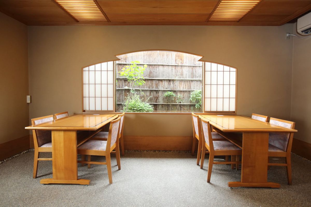 窓の向こうには明るい庭も見え、「陰影礼賛」的な日本美が味わえます。