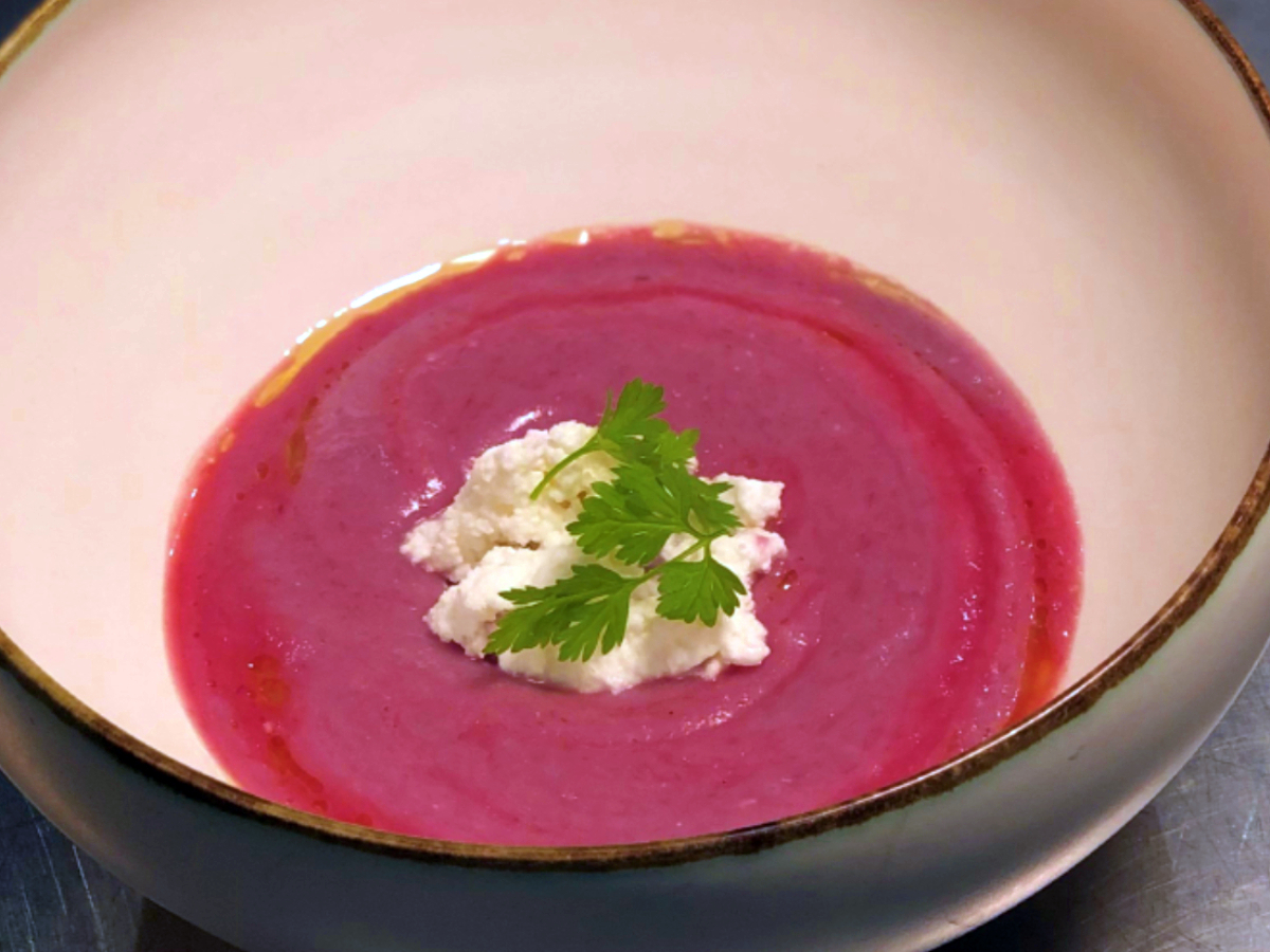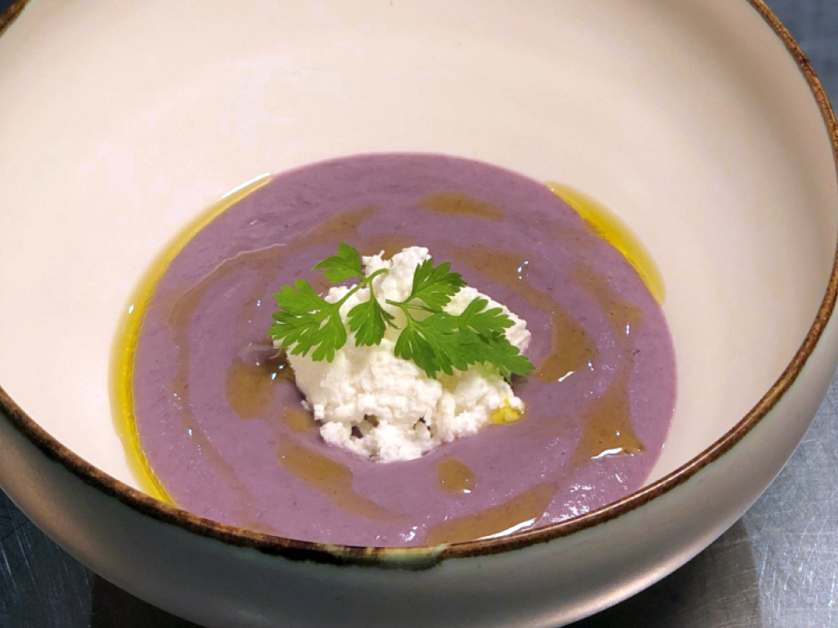 ●前菜 魔法のように色が変わるスープの作り方(シェフによるデモ)