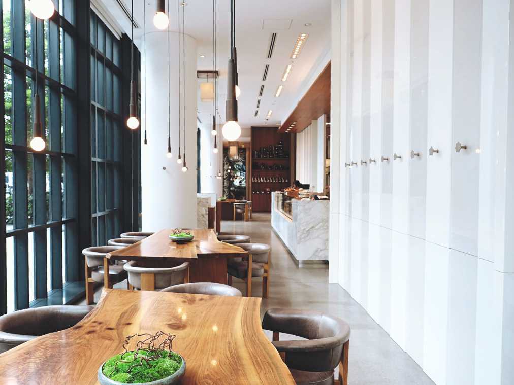ビジネスパーソンが行き交う虎ノ門。広がる都会的な街並みのなかに、「ペストリー ショップ」は店を構えます。高い天井とガラス張りの窓が広々とした空間を演出しており、とっても気持ちのいい雰囲気!