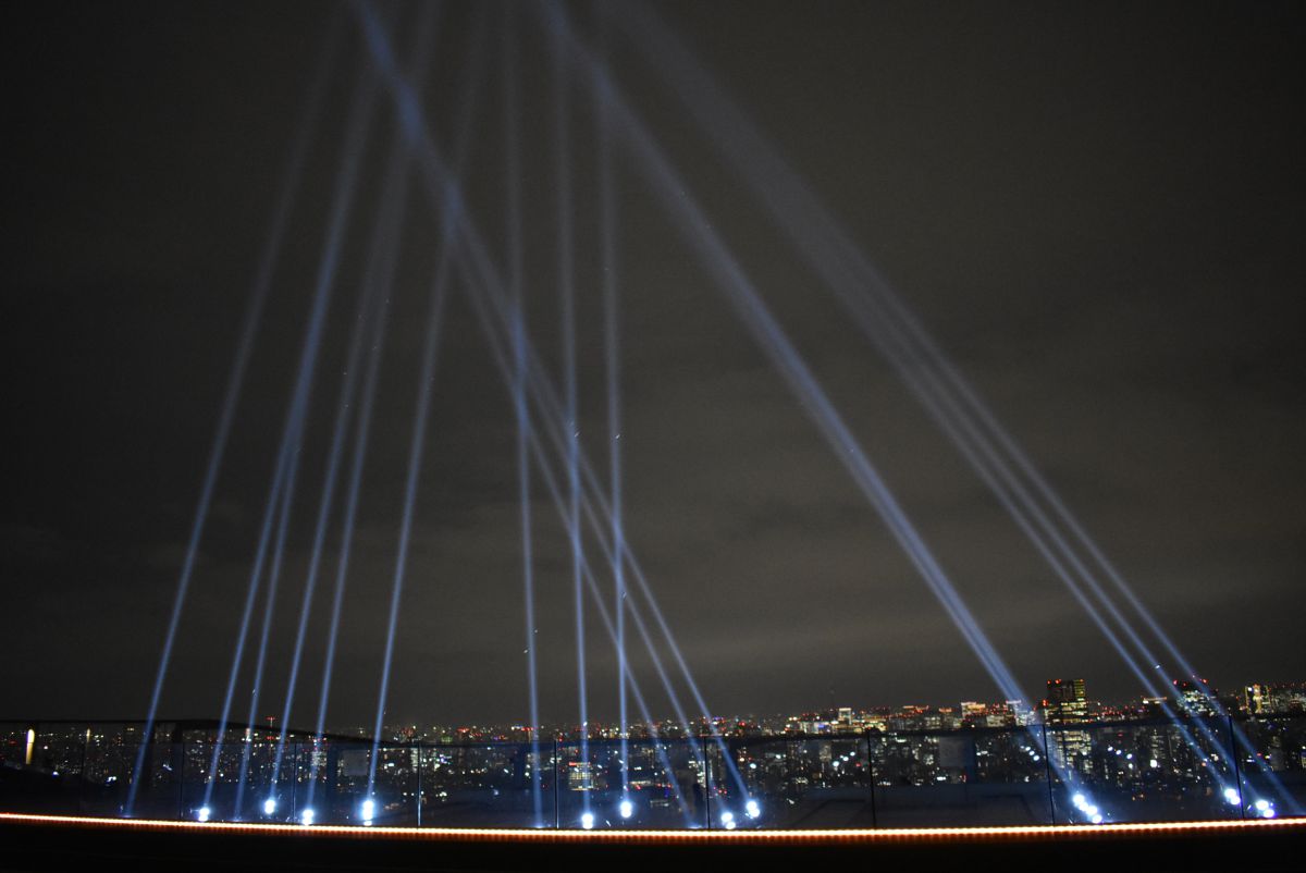毎日19時から30分単位で行われる「CROSSING LIGHT(くろっしんぐ らいと)」は空へと繋がる光の演出。空との一体感を感じられますよ。