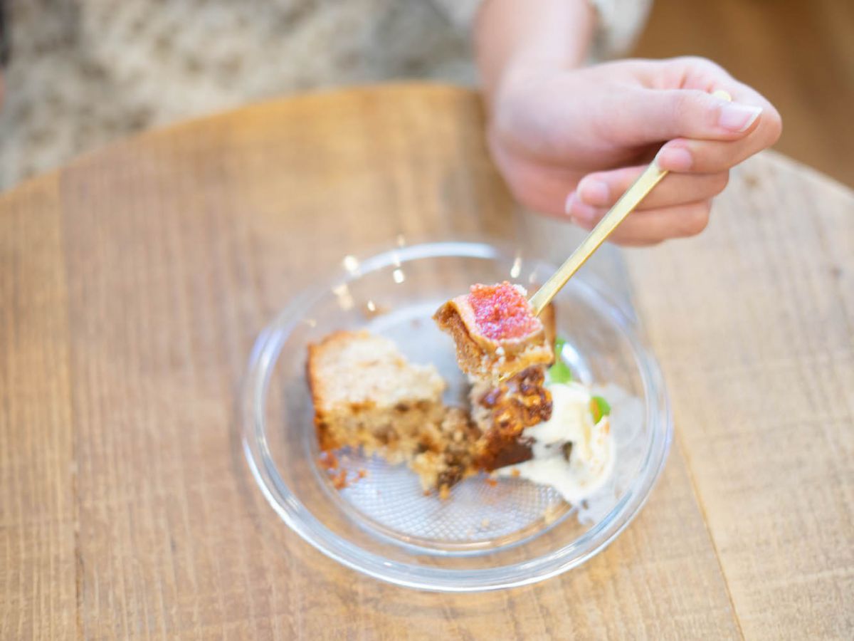 パウンドケーキの上には、イチジクの果実が。イチジクの甘みをダイレクトに感じられる、フレッシュな風味がおいしい!寒い時期には、イチジクとジンジャーのケーキが登場するそうなので、楽しみに訪れてみて。