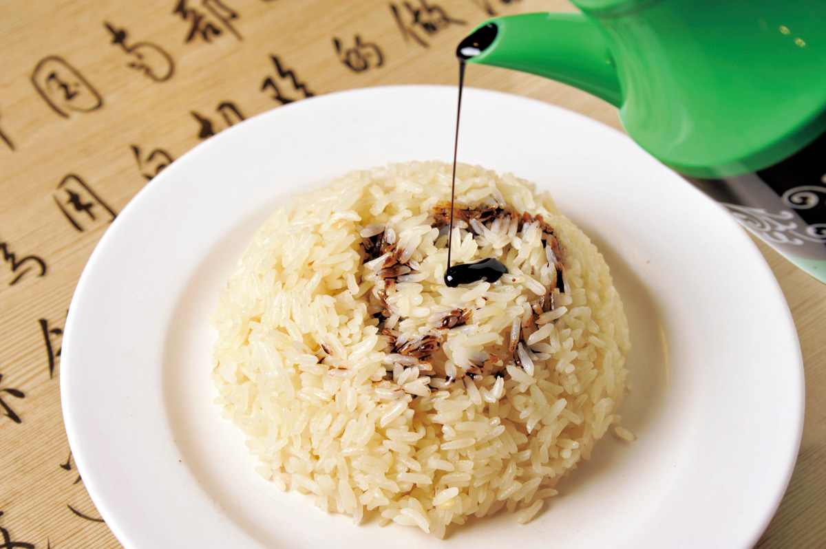 まずはトロリとした黒醤油をご飯にかけて、鶏の油とダシが利いたご飯を一口。味を見ながらかけすぎないように注意してください。