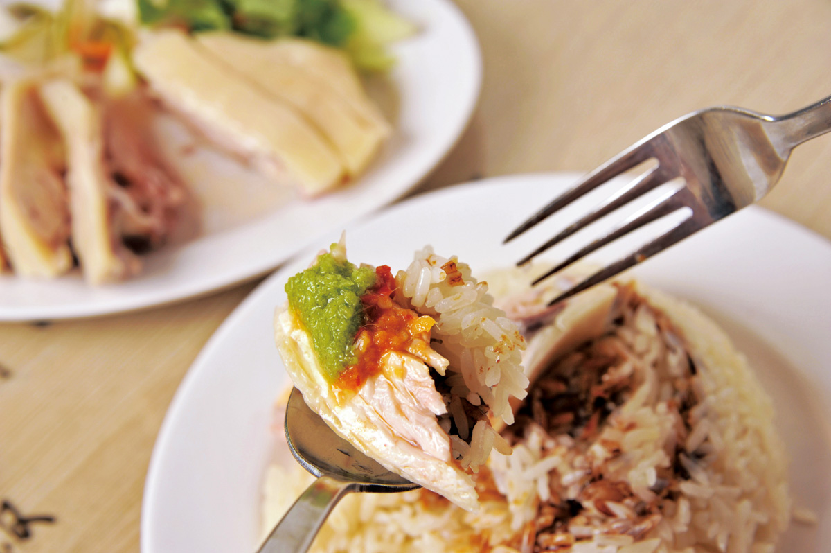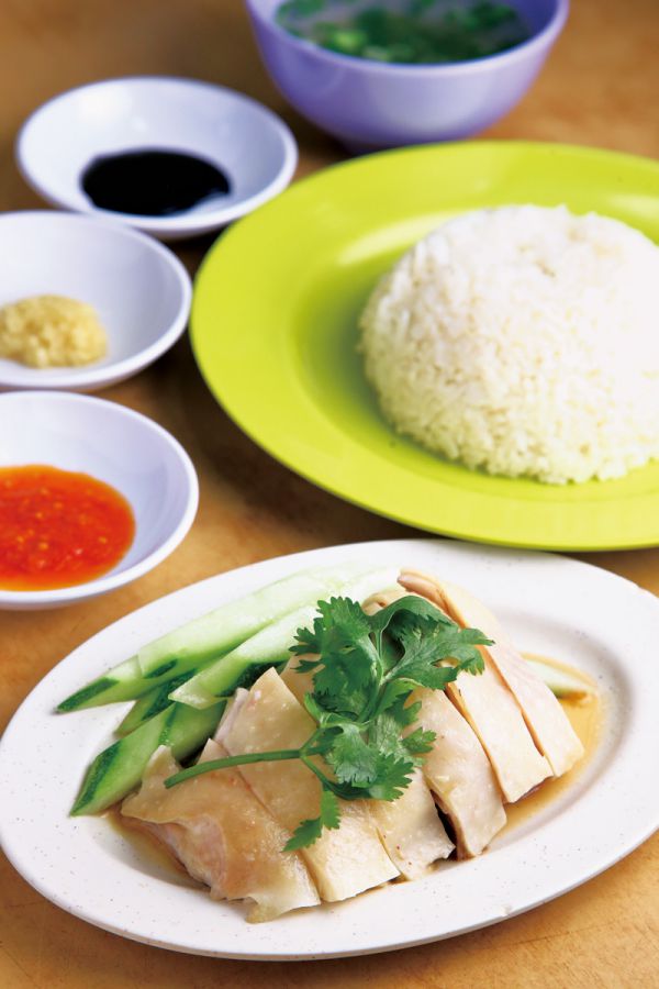 ランチタイムは周辺のビジネスマンやOLで行列ができる1935年創業の人気店。看板メニューのチキンライスは1人用のほか、2~3人でシェアしてちょうどよいハーフサイズS$14などもあるので、グループの日本人観光客におすすめです。窓際にキッチンがあり、調理の様子も見えるローカル感がたまりません。