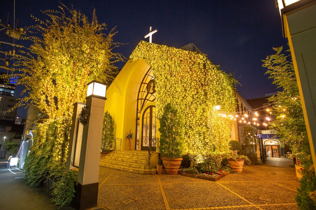 11月1日表参道で一番早いクリスマスイルミネーションが点灯!シャンパンゴールドに煌めく“南青山ル・アンジェ教会”