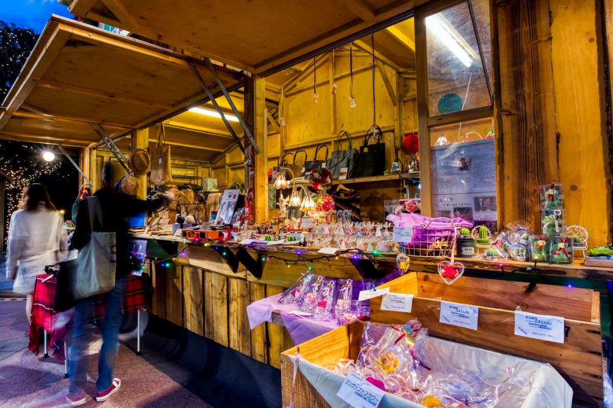 クリスマス雑貨の専⾨店や⼤切な⼈への贈り物選びを楽しめるギフトショップなどがあり、イルミネーションを⾒ながら本場のクリスマスマルシェの雰囲気を感じられるはず。