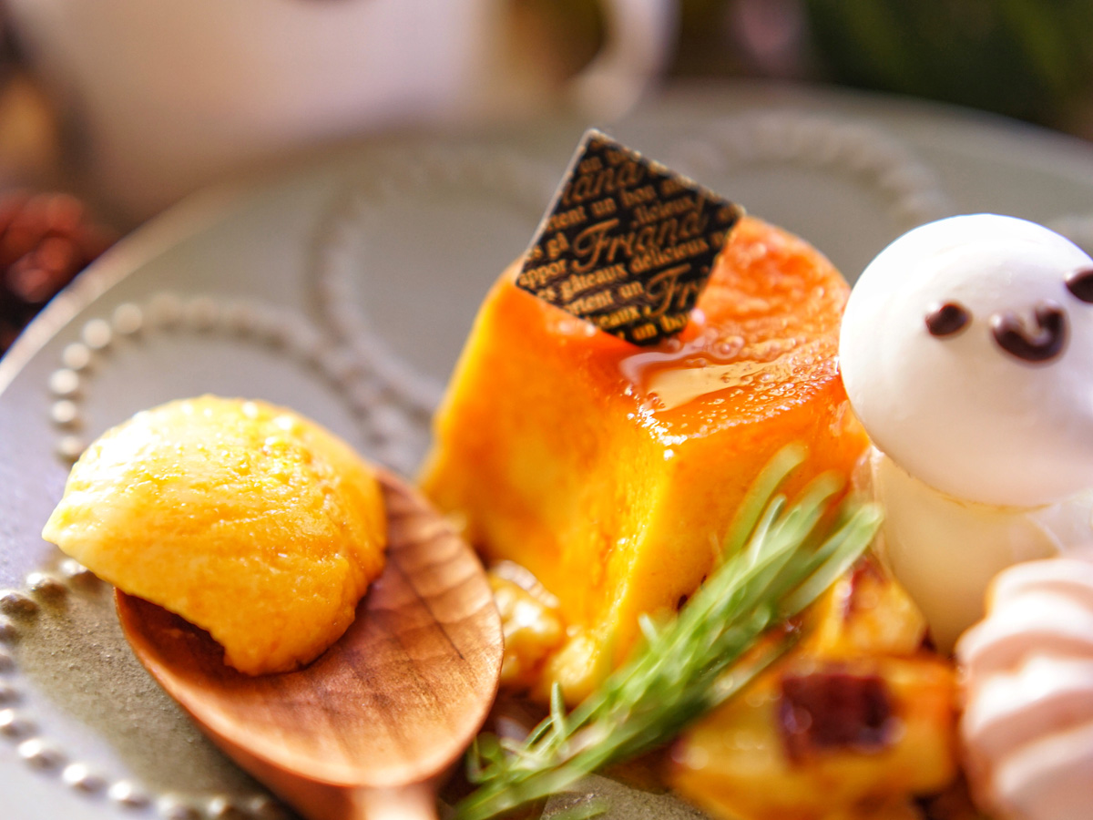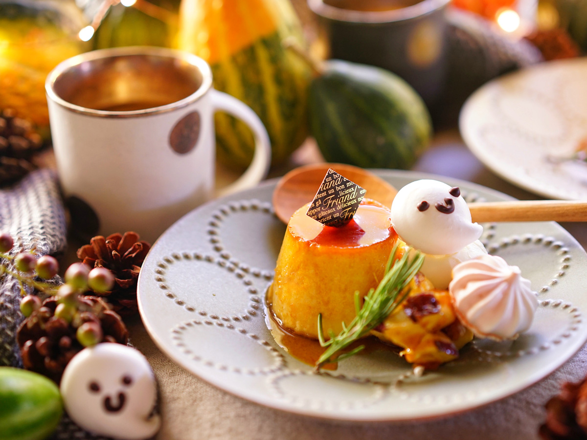 ほっくり濃厚なかぼちゃのプリンと、さくさくおばけのメレンゲ。