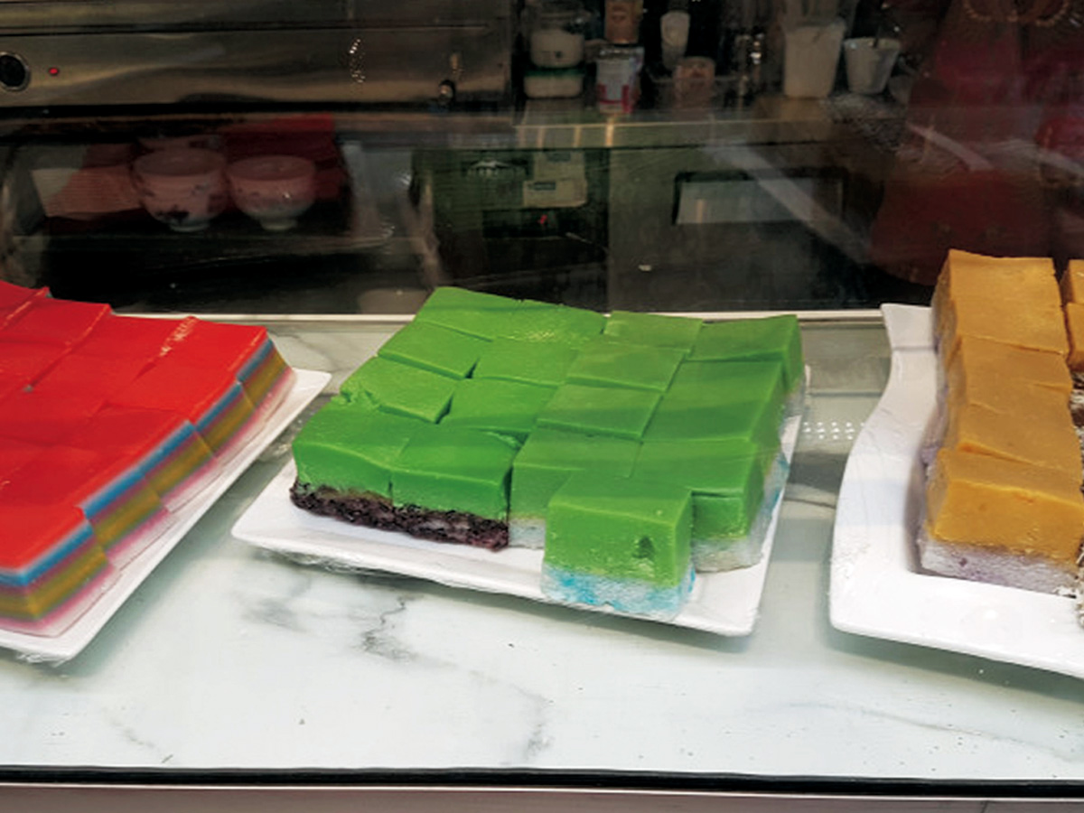 パンダンの緑鮮やかなお菓子クエ・サラS$2.8~をぜひお土産に買って帰りましょう。