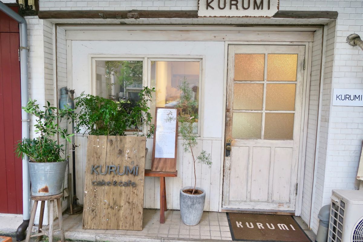 大濠公園駅から徒歩4分、明治通りの路地裏にある「KURUMI(クルミ)」。築約80年の古長屋をリノベーションした2階建ての建物にカフェを併設している、かわいいケーキ屋さんです。パティシエ兼女性オーナーの永野さんが“旬なもの、自分が食べたいもの”をチョイスして作る、優しい甘さのタルトが評判です。