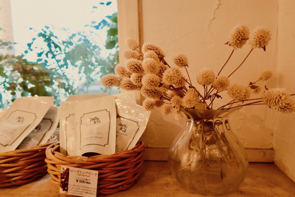 「カモミールブラック」「スウィートブルーベリー」「ローズヒップピーチ」(各500円)などのフレーバーティーも販売。味はもちろん、パッケージもカワイイので、ケーキや焼き菓子といっしょに手土産にしても○