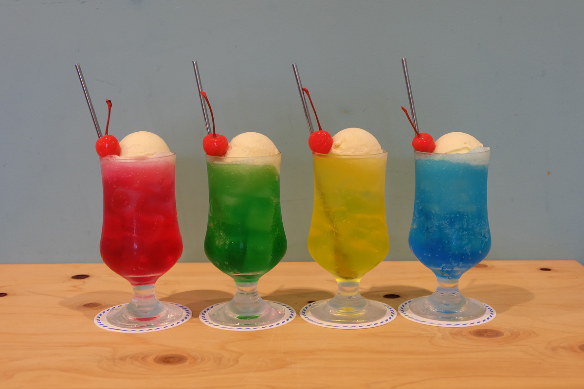 昔懐かしの喫茶メニューも魅力!こちらの「クリームソーダ」(500円)は、ストロベリー・メロン・レモン・ブルーハワイを用意しています。カラフルな色合いは写真を撮ってしまいたくなるくらいキュート!
